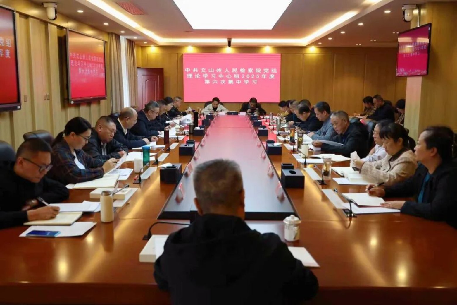 10月27日,文山州检察院举行党组理论学习中心组2025年第六次集中学习,深入学习领会习近平文化思想,持续用当党的创新理论凝心铸魂,持续巩固壮大团结奋进的主流思想舆论,高质量抓好检察宣传思想文化工作,运用法治力量服务保障文化强州建设。党组书记、检察长刘震乾主持学习并作学习小结。