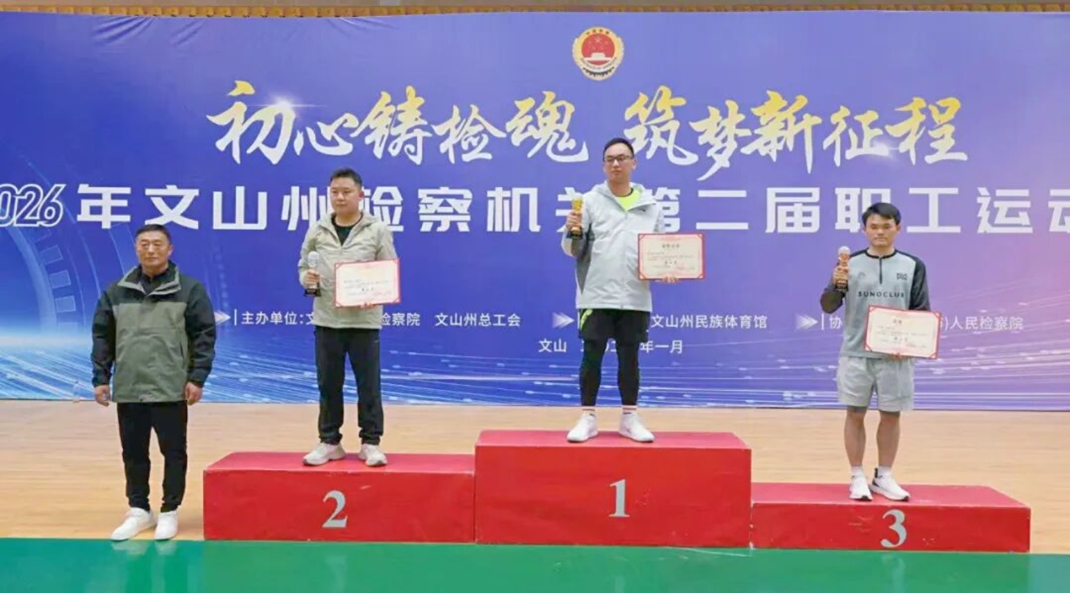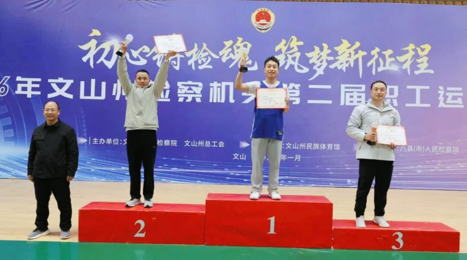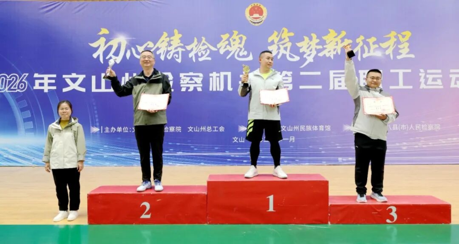 1月18日下午,为期3天的第二届文山州检察机关职工运动会,在全体运动员、裁判员和工作人员的奋力拼搏和辛勤工作下,顺利完成全部比赛任务,在文山州民族体育馆圆满闭幕。