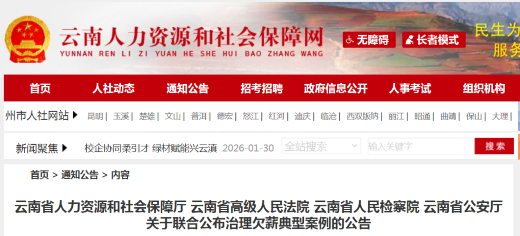 1月30日,云南省人力资源和社会保障厅、云南省高级人民法院、云南省人民检察院、云南省公安厅联合公布云南省治理欠薪典型案例,马关县人民检察院提起公诉的黄某某拒不支付劳动报酬案成功入选,该案是文山州唯一入选的治理欠薪典型案例。