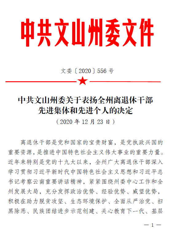 近年来,文山州检察院党组高度重视退休干部党支部工作,从支部组织建设、思想政治建设、活动场所建设、常态化活动建设、关心关爱离退休干部等方面,不断加强对退休干部党支部的领导和管理。12月23日,文山州检察院退休干部党支部被州委表扬为“全州离退休干部先进集体”。