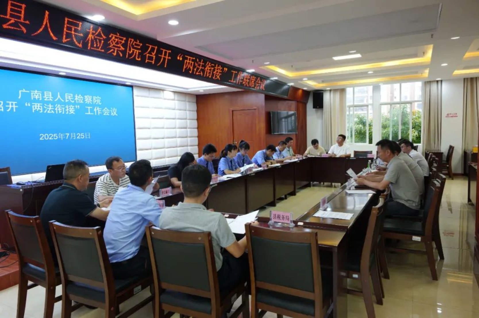 为进一步落实行政执法与刑事司法衔接工作机制,提升执法司法协同效能,7月25日,广南县人民检察院组织召开“两法衔接”工作联席会议,邀请县公安局、县市场监管局等10家行政执法单位分管领导及业务骨干参会。