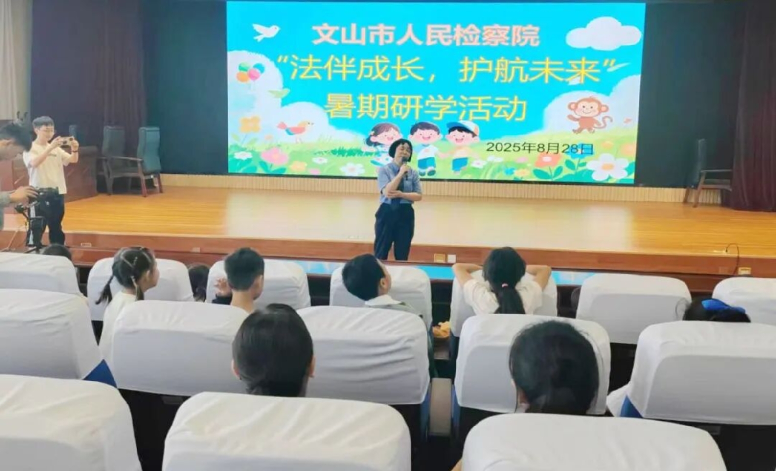 近日,文山市人民检察院迎来一群特殊的“小访客”,近20余名“检二代”小朋友走进庄严而神秘的检察院开启一场以“法伴成长,护航未来”为主题的暑期法治研学活动。孩子们带着好奇与期许探秘检察院的“神秘角落”,一场兼具趣味性与教育性的法治之旅就此拉开序幕。此次活动文山州检察院专职检委委员廖忠玲到场指导并致辞。