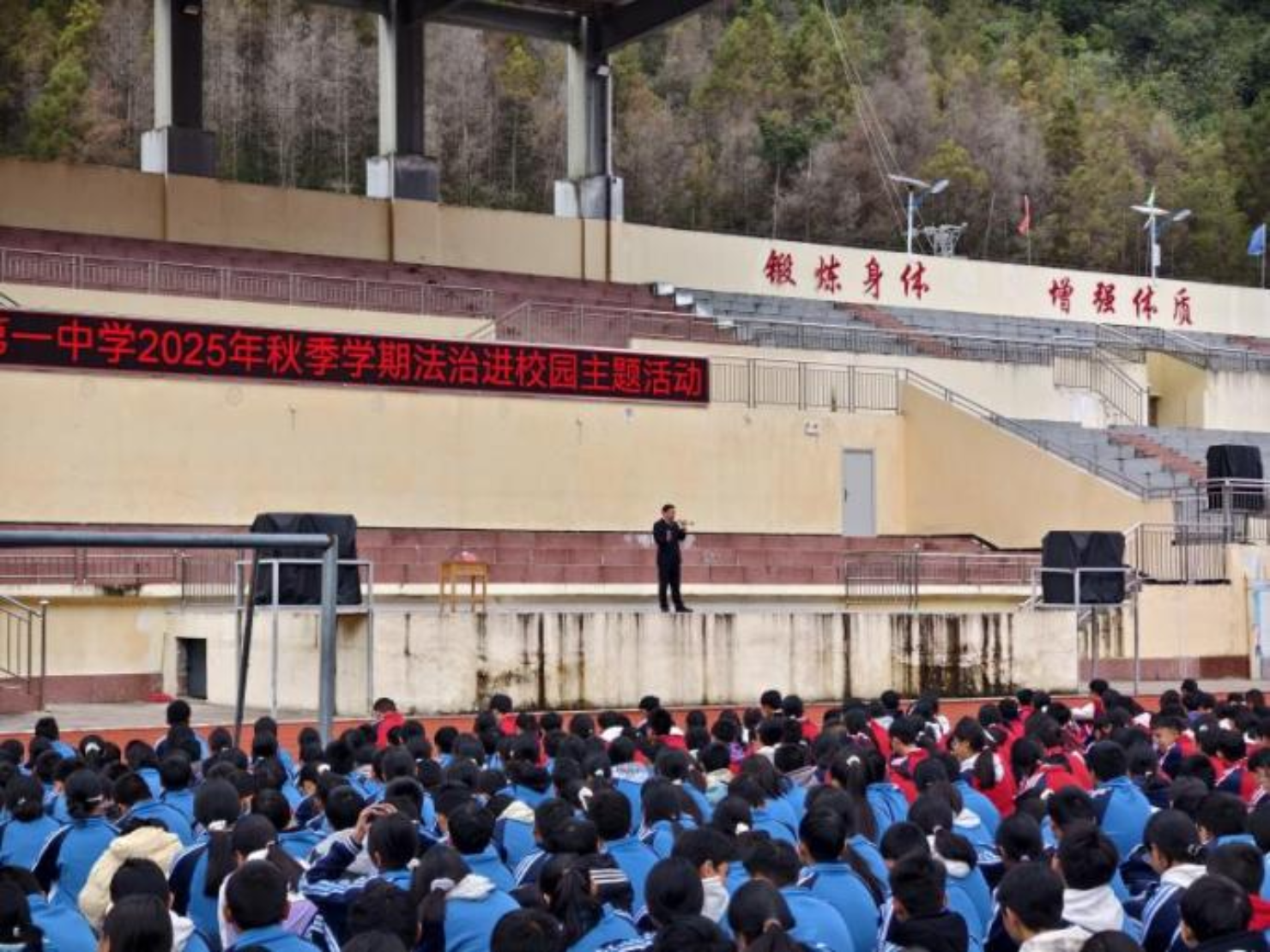 11月14日,杨元富检察官以“法治护航、守护青春”为主题,为西畴县第一中学初中年级1100余名学生及部分教师,解读《中华人民共和国未成年人保护法》《中华人民共和国预防未成年人犯罪法》等核心条款,并结合检察机关的法律监督职能和丰富的办案实践经验以案释法,叮嘱大家要筑牢“防诈墙”守好生活费。